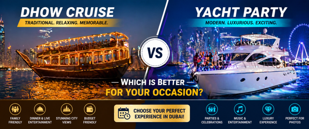 Dhow Cruise vs Yacht Party in Dubai: Which Is Better for Your Occasion?